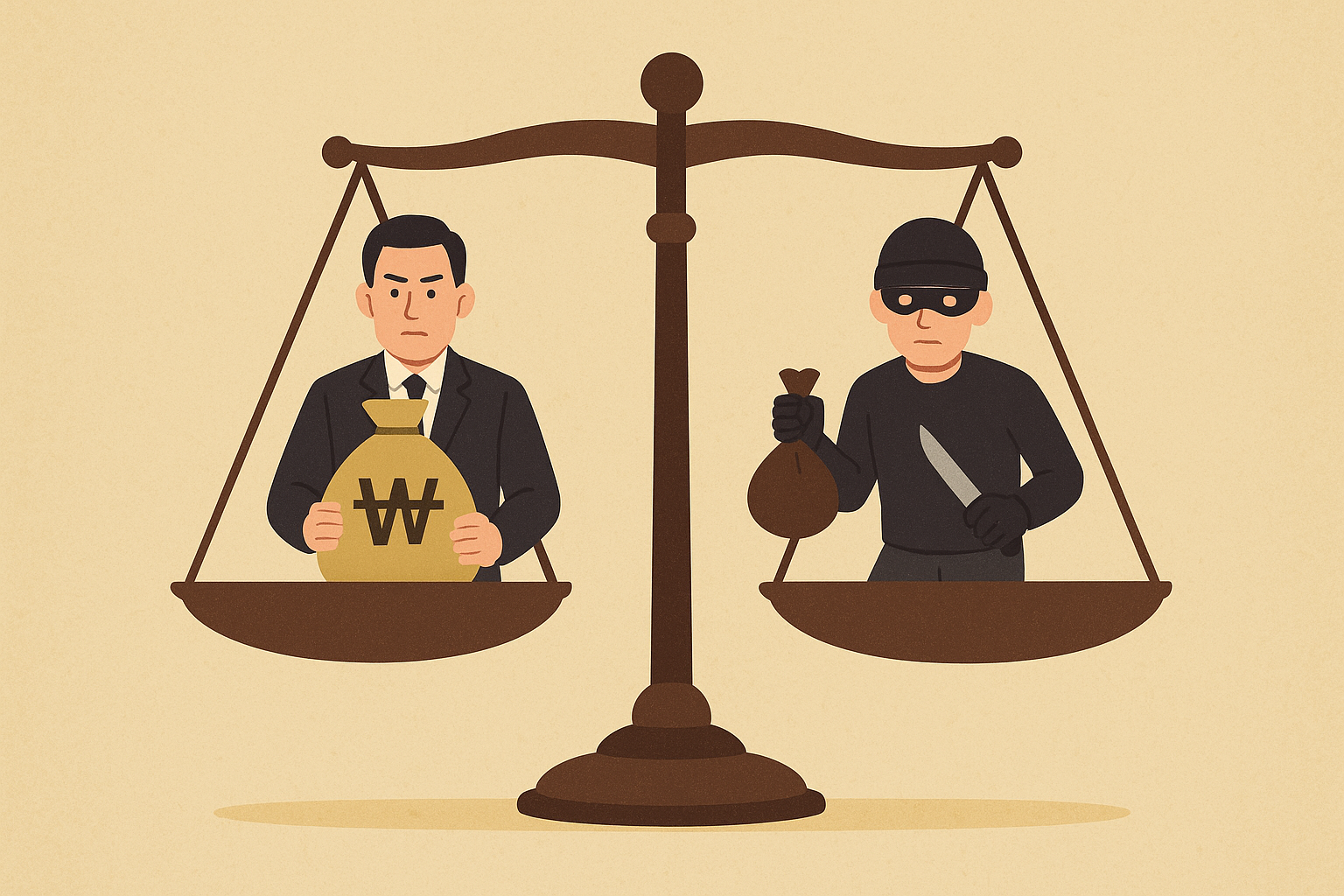 - 법적 처벌의 불균형: 강력범죄는 무겁게, 경제범죄는 상대적으로 가볍게 다루는 관행.