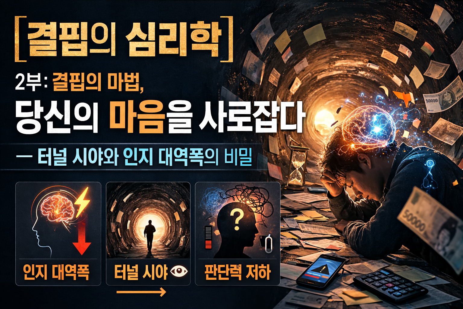결핍은 우리의 인지 대역폭을 소모하고, '터널 시야'를 만들어 주의력을 좁히며,